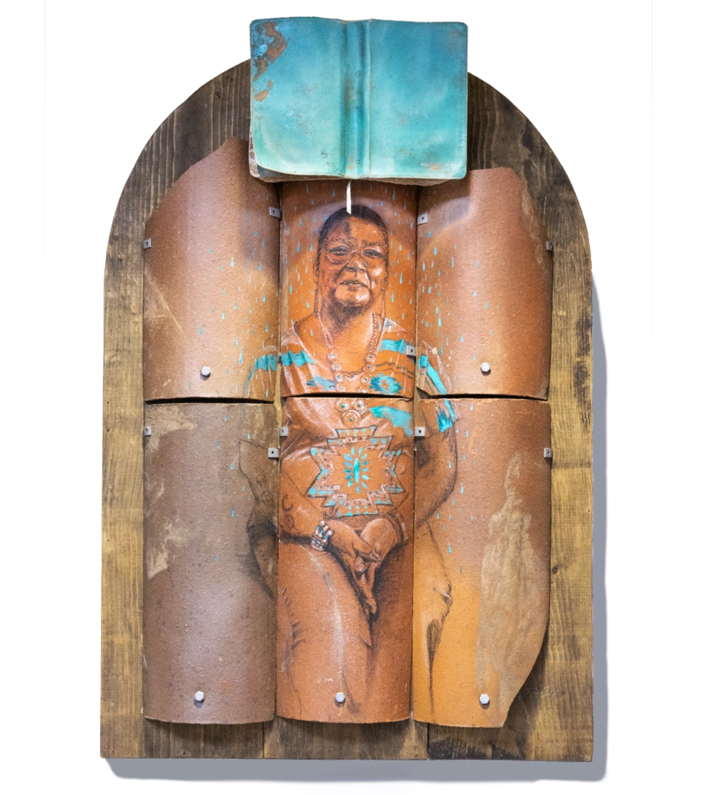 His name—“Said” in Arabic—means “happy.” His parents are Palestinian, born in Jerusalem. I created this portrait during the 2025 Israel-Palestine war. Carrying both Palestinian and Israeli heritage, Sid expresses a deep desire for peace. He often expresses our common humanity in the phrase “we all bleed red,” a phrase inscribed in English, Arabic, and Hebrew at the base of the work.